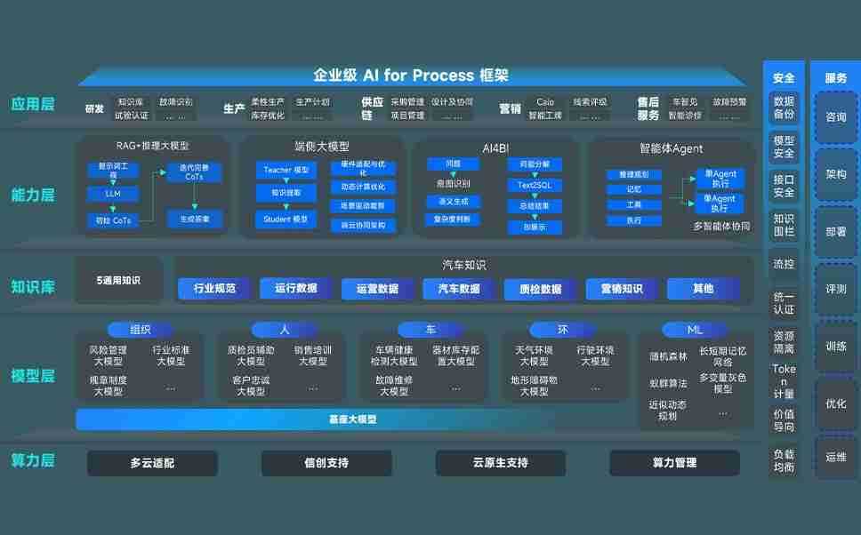 超凡国际问学智车解决方案是一套基于AI技术的汽车行业智能化系统,,覆盖从底层算力到顶层AI应用的全栈方案。。方案由算力层、、、模型层和应用层组成:算力层,,方案支持多种一体机配置,,,具备云端灵活部署、、、、多云适配以及动态优化计算资源的能力;模型层,,,超凡国际问学平台版提供了企业级AI应用一站式构建与管理平台,,支持基于后训练强化技术的汽车企业专属模型的训练、、、、评测和运营;应用层,,超凡国际问学DeepSeek版提供包括超级员工、、智能招采、、智能营销、、、智能客服、、、、AI for BI等一系列解决方案,,,可助力汽车行业实现数字化转型,,,让管理更智能、、、、响应更敏捷。。。